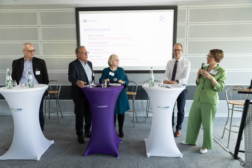 Im Abschlusspanel diskutierten Petra Jendrich (Bildungsministerium Rheinland-Pfalz), Dr. Knut Diekmann (DIHK), Peter Thiele (BMBF) und Koen Nomden (EU-Kommission) die strategische Verortung von Europass innerhalb der Agenda der neuen EU-Kommission und vertieften den Blick in die am 5.3.2020 veröffentlichte „Union of Skills“. Der Fokus lag auf der Rolle von Europass für Chancengleichheit und die Anerkennung non-formalen und informellen Lernens, europäischer und nationaler Interoperabilität, digitalen Nachweisen und der Weiterentwicklung des Europäischen Bildungsraums.