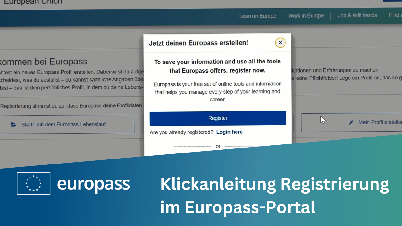 In diesem Screencast siehst du, wie du dich im Europass-Portal registrieren kannst, um dann dein Europass-Profil anzulegen.