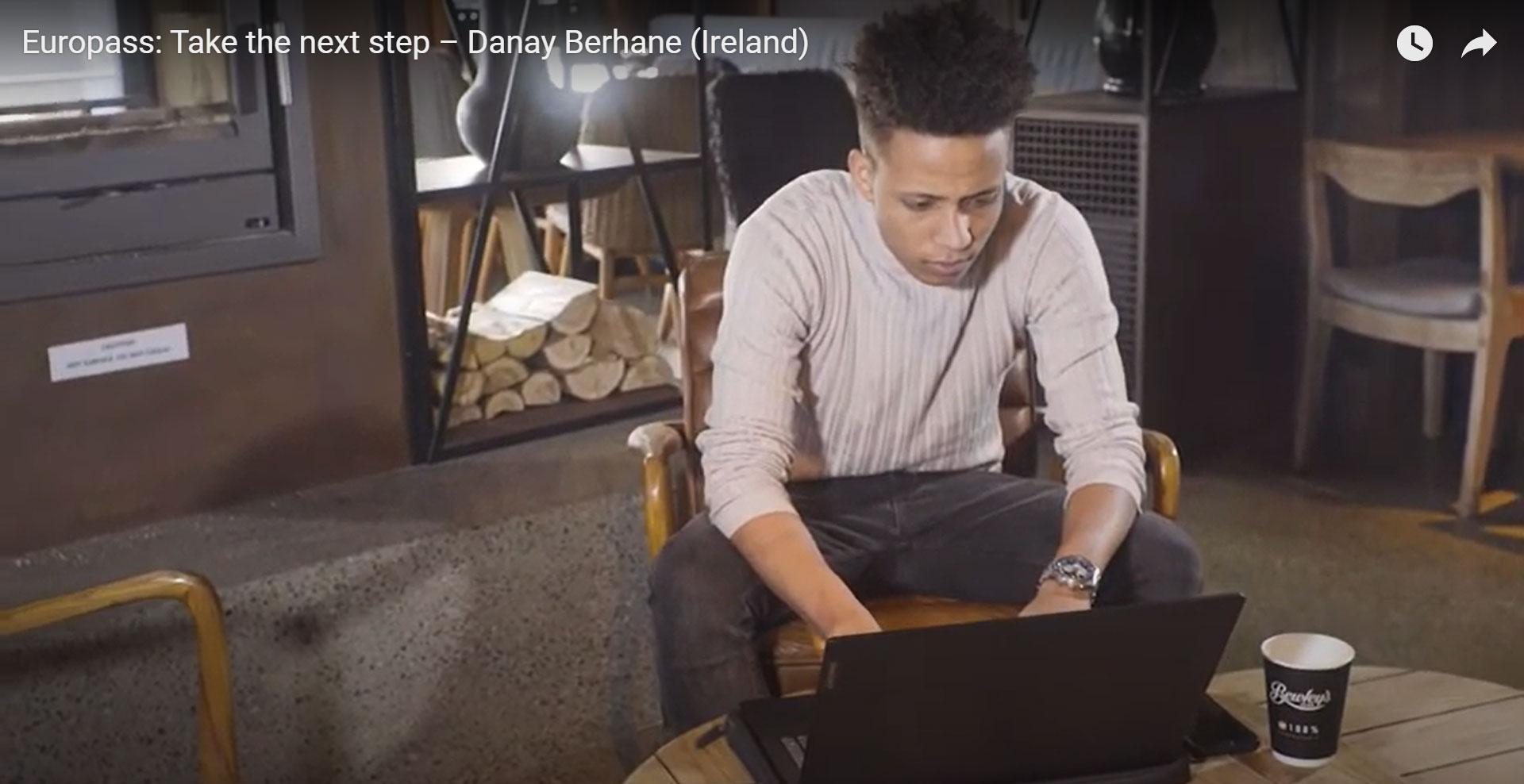 Danay Berhane beschreibt in dem Video seinen Ausbildungsweg als Koch in Irland und wie ihm der Europass dabei geholfen hat, seinen Bildungsweg und seine Arbeitserfahrungen zu dokumentieren.